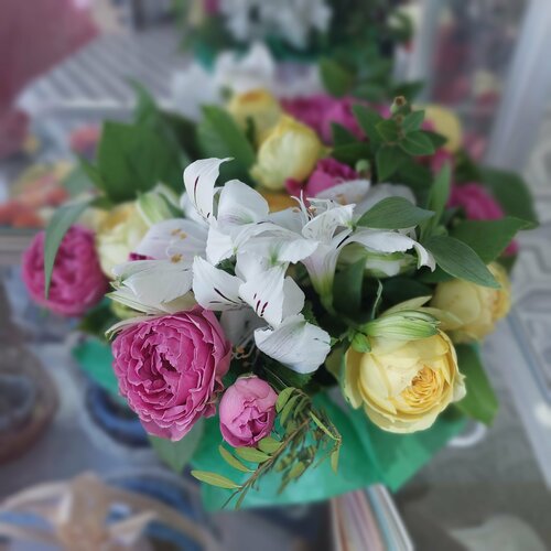 Собирають очень хорошие и красивые букеты, покупал букет девушке из пионо видных кустовых роз. Больше разнообразие цветов и не дорого