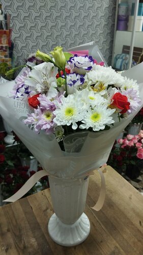 Быстро и аккуратно собрали букет в пределах озвученных мною 3.500 руб. Флорист очень вежливая, внимательная, предложила несколько вариантов оформления на выбор. Спасибо за ощущение праздника!